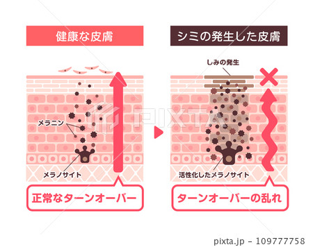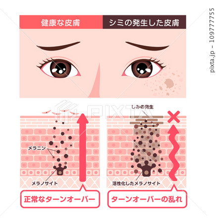 健康な皮膚としみの発生した皮膚の比較イラスト