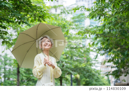日傘を差す夏のシニア女性