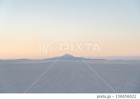 Minimalist sunset over vast white Salar de Uyuni, Bolivia