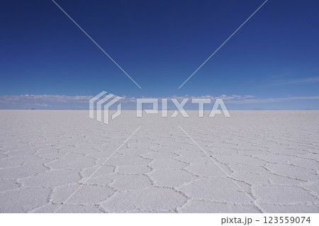 12月のボリビアのウユニ塩湖の白い平原 Uyuni Salt Flats in December