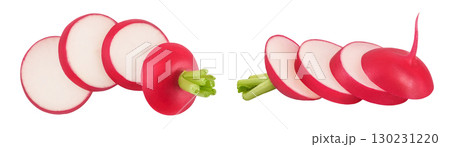 Radish slices isolated on white background. Top view. Flat lay