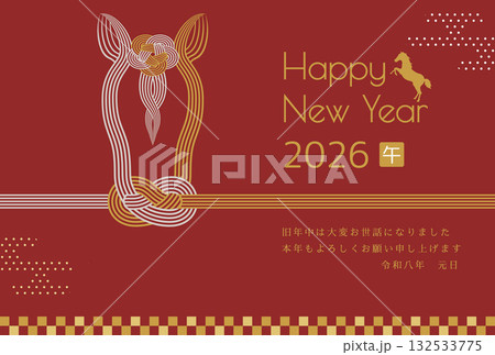 午年 馬年 年賀状テンプレート 馬をモチーフにした水引