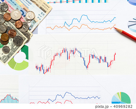 ローソク足と外貨、円グラフ 為替 金融 ファイナンス 経済 資産運用