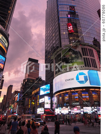アメリカ・ニューヨーク 42丁目7番街交差点 夕景 W 42nd St, New York City