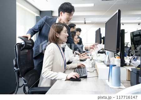 オフィスでパソコンに向かって仕事をする女性スタッフ