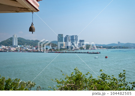 ワット・コ・ロイの釣鐘とシーラチャー湾 タイ王国チョンブリー県
