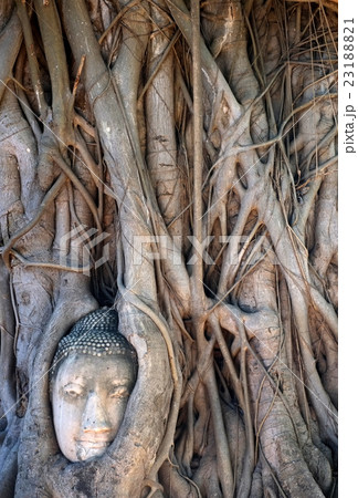 木の根に覆われた仏頭(タイ、アユタヤ遺跡)