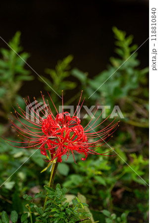 雨上がりの秋の野原の彼岸花