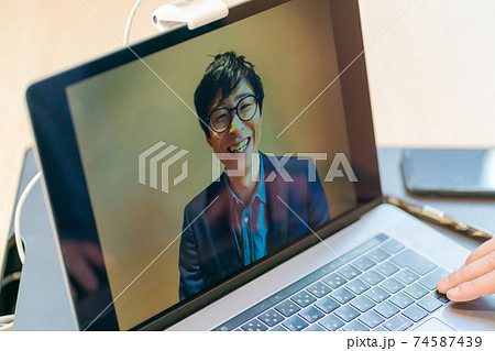 PCに向かってビデオ通話をしている男性