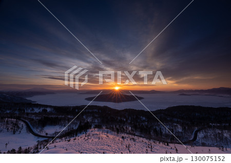 屈斜路湖に昇る冬の朝日