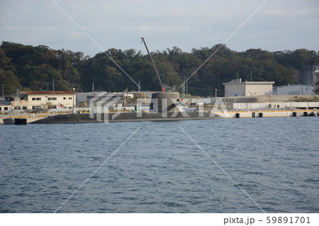 長浦湾潜水艦桟橋に係留中のそうりゅう型潜水艦