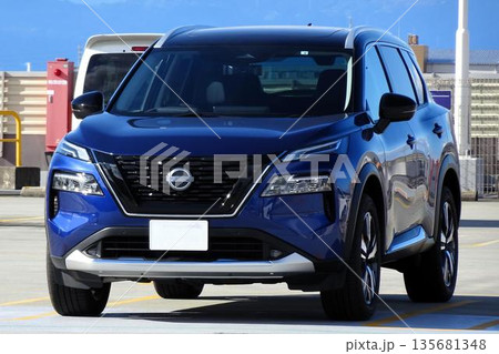 駐車場に並んだ乗用車 (日産・ノート E12 2代目)