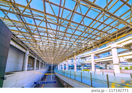 日本の横浜都市景観 横浜駅きた東口B側通路から横浜ベイクォーター(右奥)などを望む=8月12日