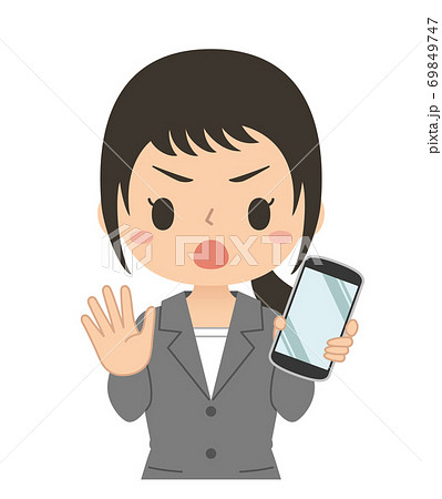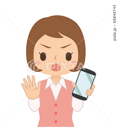 NOサインでスマホを持つ女の子のアイコン 高校生 中学生 イラスト
