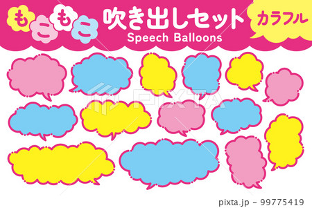 シンプルな吹き出しセット 円丸 カラフル線色 ベクター png背景透明