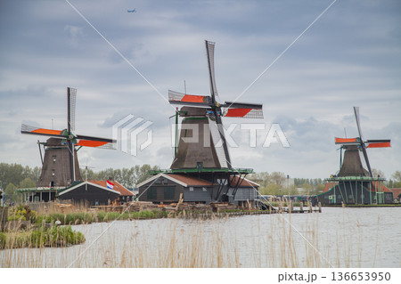 Windmills at Zaanse Schans in Holland. Zaandam, Nether