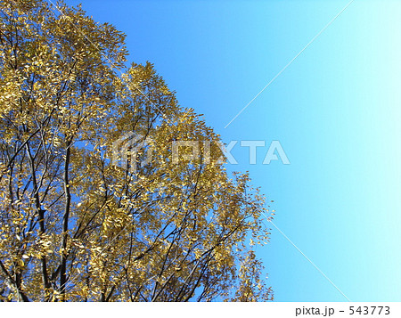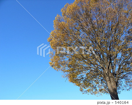 自然 植物 ケヤキ、並木道。秋空を挟んで黄色と赤に色づきました