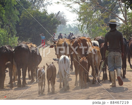 アフリカのマラウイ・ゾンバの日常風景(牛)