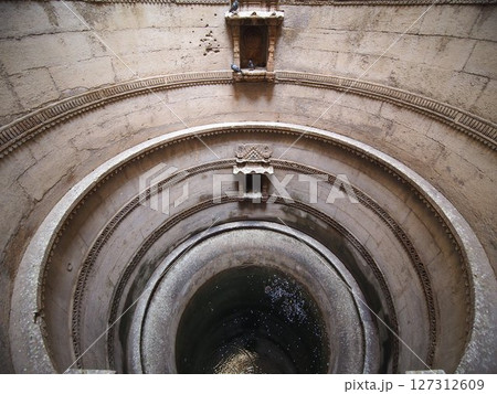 Inner view of Adalaj Ni Vav (Stepwell), or Rudabai Stepwell. Built in 1498 Five stories deep. Adalaj, Gujarat, India