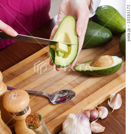 female hands cooking with avocado