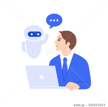 質問に答えてくれるAI。アシスタントとして補助してくれるAIのイラスト素材。