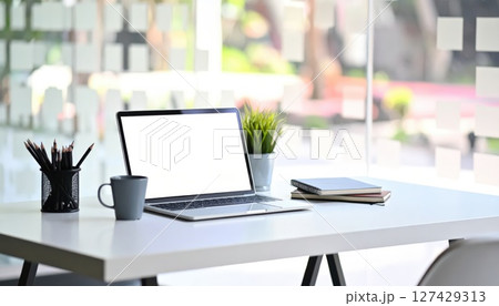 ホワイトボードの前で微笑むビジネスウーマンのイラスト素材