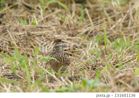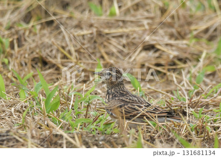 草地に降りたヒバリ