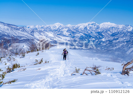【冬山素材】冬の小遠見尾根を歩く登山者【長野県】
