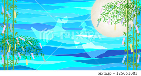 七夕 笹 夏 織姫 彦星 牽牛 シルエット 影絵 切絵 背景 イラスト素材