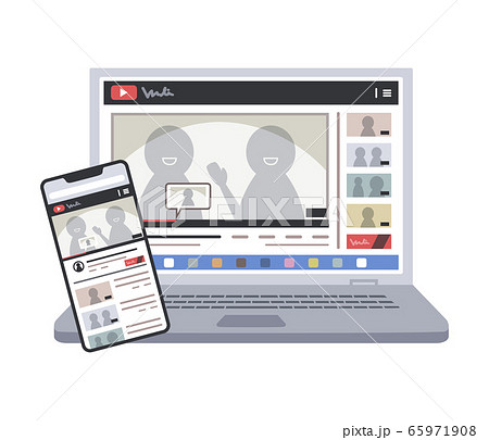 ノートパソコンとスマホのイラスト(動画サイトの画面)・主線あり