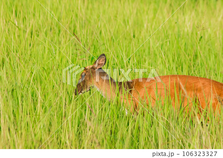 Western Sitatunga (Tragelaphus spekii gratus).Pasture of wild animal on the meadow