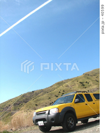 黄色いトラックと山と空と