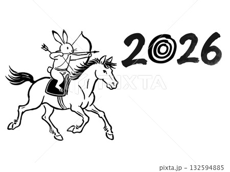 鳥獣戯画風流鏑馬の年賀状素材兎