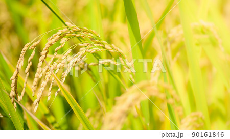 阿蘇の田園風景クローズアップ(秋晴れ・稲刈り・阿蘇のお米)(秋)日本・九州・熊本県阿蘇市
