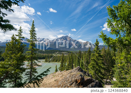 Majestic Pyramid Mountain Reflections on Athabasca River, Jasper National Park, Alberta, Canada