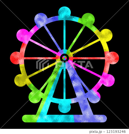観覧車の虹色グラデーションのシルエットイラスト 黒背景の切り抜き