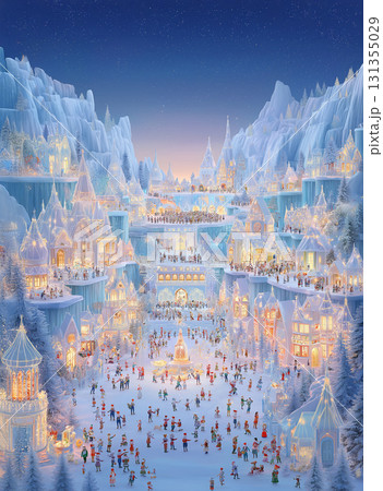 氷の城下町のファンタジー、光り輝く夜のクリスマス祭り