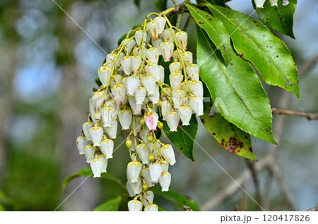 丹沢の袖平山 春山を彩るアセビの花