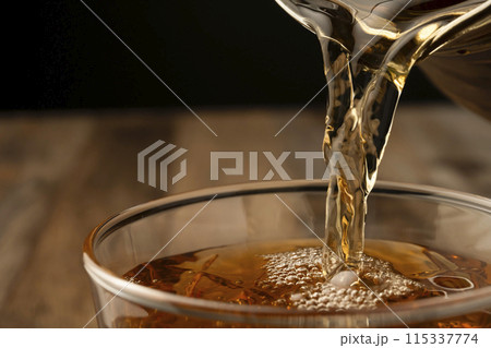 麦茶、日本の夏の飲み物、庭の木陰で撮影
