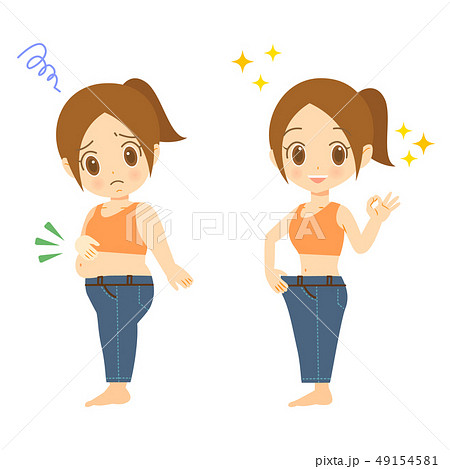 痩せ過ぎや痩せている女性などダイエットビフォーアフターのイラスト