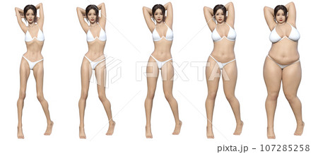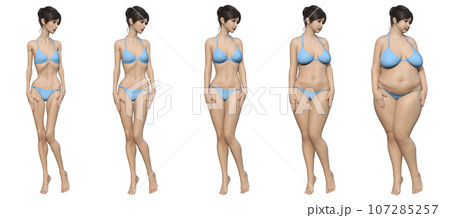 若い女性のBMI指数による体型の変化 ボディマスインデックス イラスト ベクター