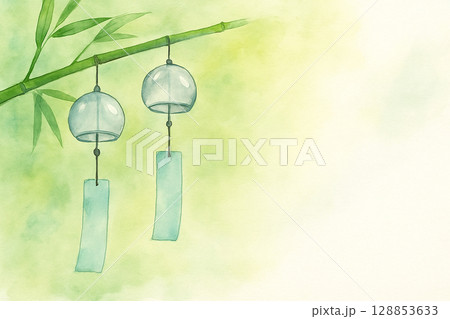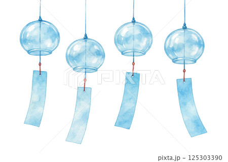 水彩で描いた涼しげな風鈴のイラスト(季節・行事)