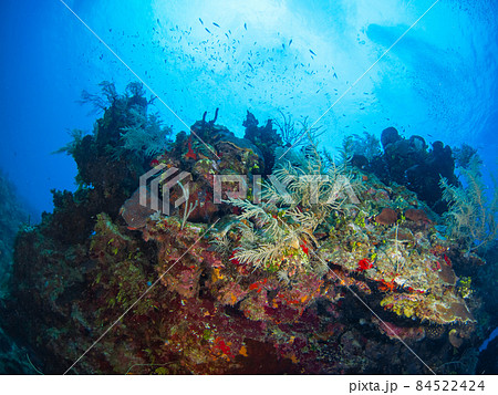 珊瑚の根とスクーバダイバー (グランドケイマン、ケイマン諸島)