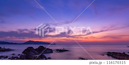 Nature beautiful Light Sunset or sunrise over sea, Colorful dramatic majestic scenery Sky with Amazing clouds and waves in sunset sky