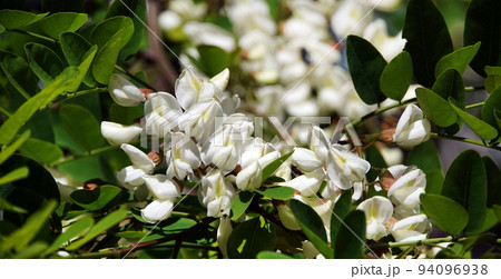 Acacia blooming in spring is flowers, leaves and needles.