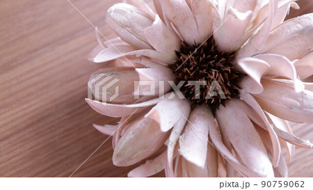 大きな花のドライフラワー 余白スペース 木製のデスク