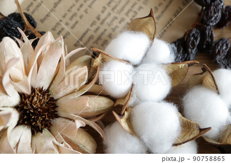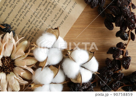 枝付きレーズン 綿花 ドライフラワー 洋書