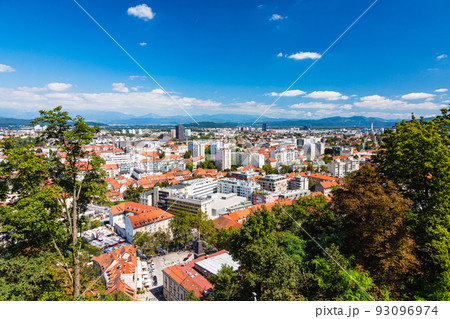 スロベニア リュブリャナのリュブリャナ城の丘から望む新市街の街並み