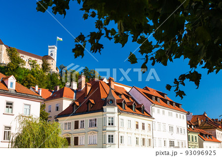 スロベニア リュブリャナの市街地から見上げるリュブリャナ城