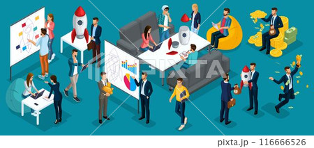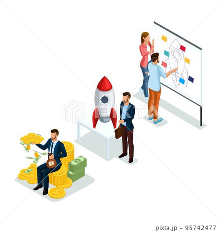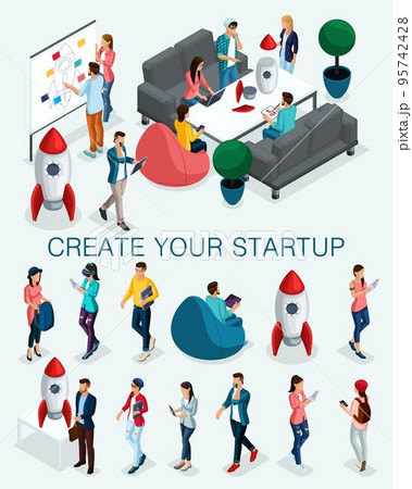 Trendy Isometric Objects, 3d icon Young Entrepreneurs, new business startup project for investors to evaluate in search of investment isolated on white background